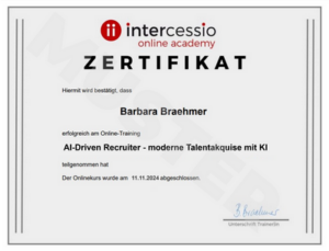Zertifikat AI-Driven Recruiter – Abschluss Onlinekurs Intercessio & Talentrakete