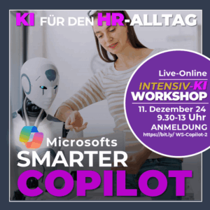 Live- Smarter Copilot – KI in HR Recruiting und Sourcing – 1224-INSTAGRAM Barbara Braehmer2024-11-16T13:04:48+01:00 Hinterlassen Sie einen Kommentar Antwort abbrechenKommentar