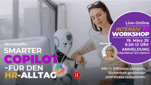 Live- Smarter Copilot – KI in HR Recruiting und Sourcing – 0325-EVENTBILD Barbara Braehmer2025-02-28T05:01:04+01:00 Hinterlassen Sie einen Kommentar Antwort abbrechenKommentar